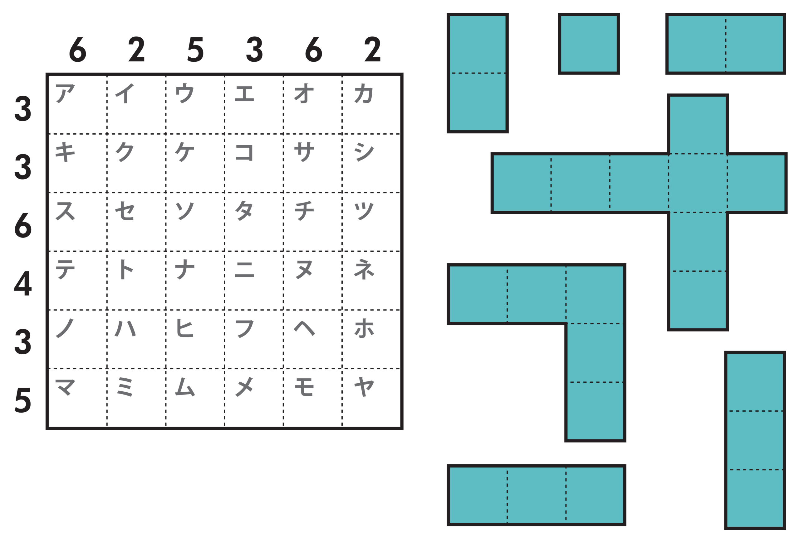 今回の問題は、一番小さなマスが入った場所にあるカタカナは?