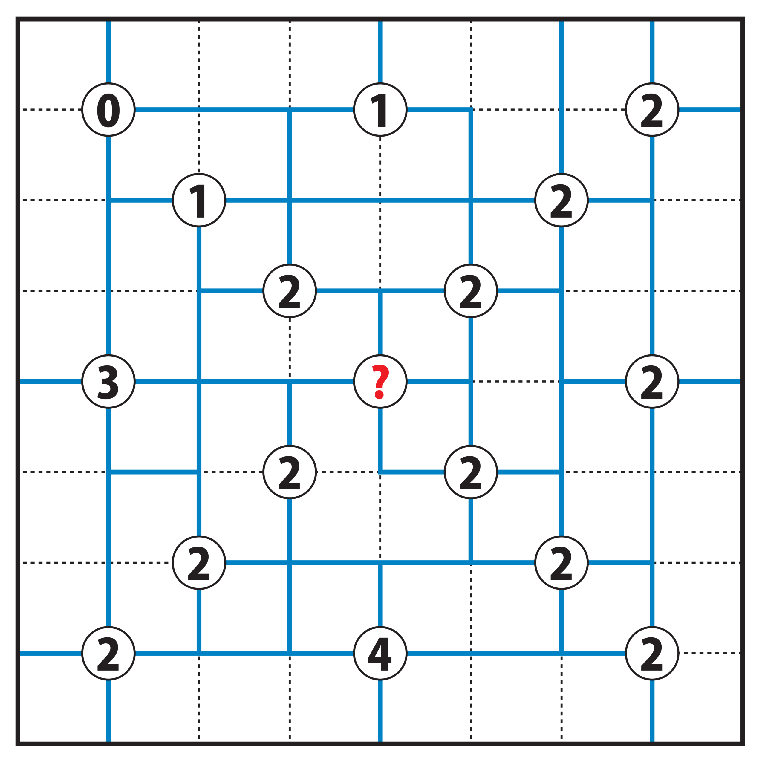 ・丸の中の数字は、その丸が接している四つのマス目のうち、いくつのマス目をぬるのかを表しています。