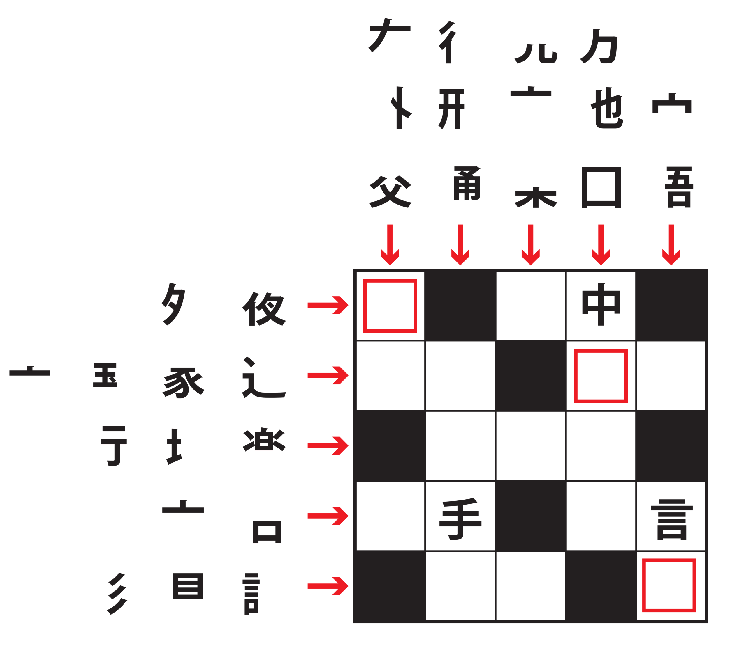 今回の問題は、赤いマスに入る漢字3文字でできる言葉は?
